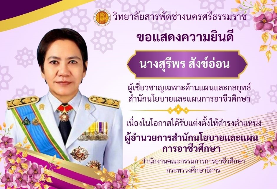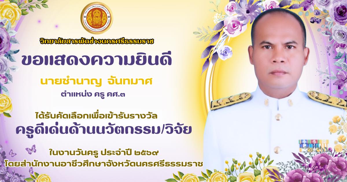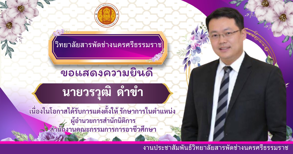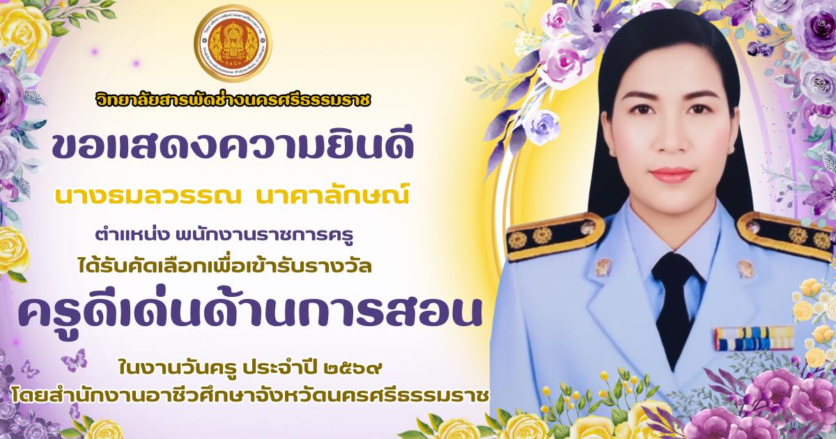 การสอนหลักสูตรระยะสั้น Up skills , Re skills 36 ชั่วโมง ”หลักสูตรจัดดอกไม้เชิงธุรกิจแบบสากล“ ให้กับประชาชนทั่วไป ณ วิทยาลัยสารพัดช่างนครศรีธรรมราช