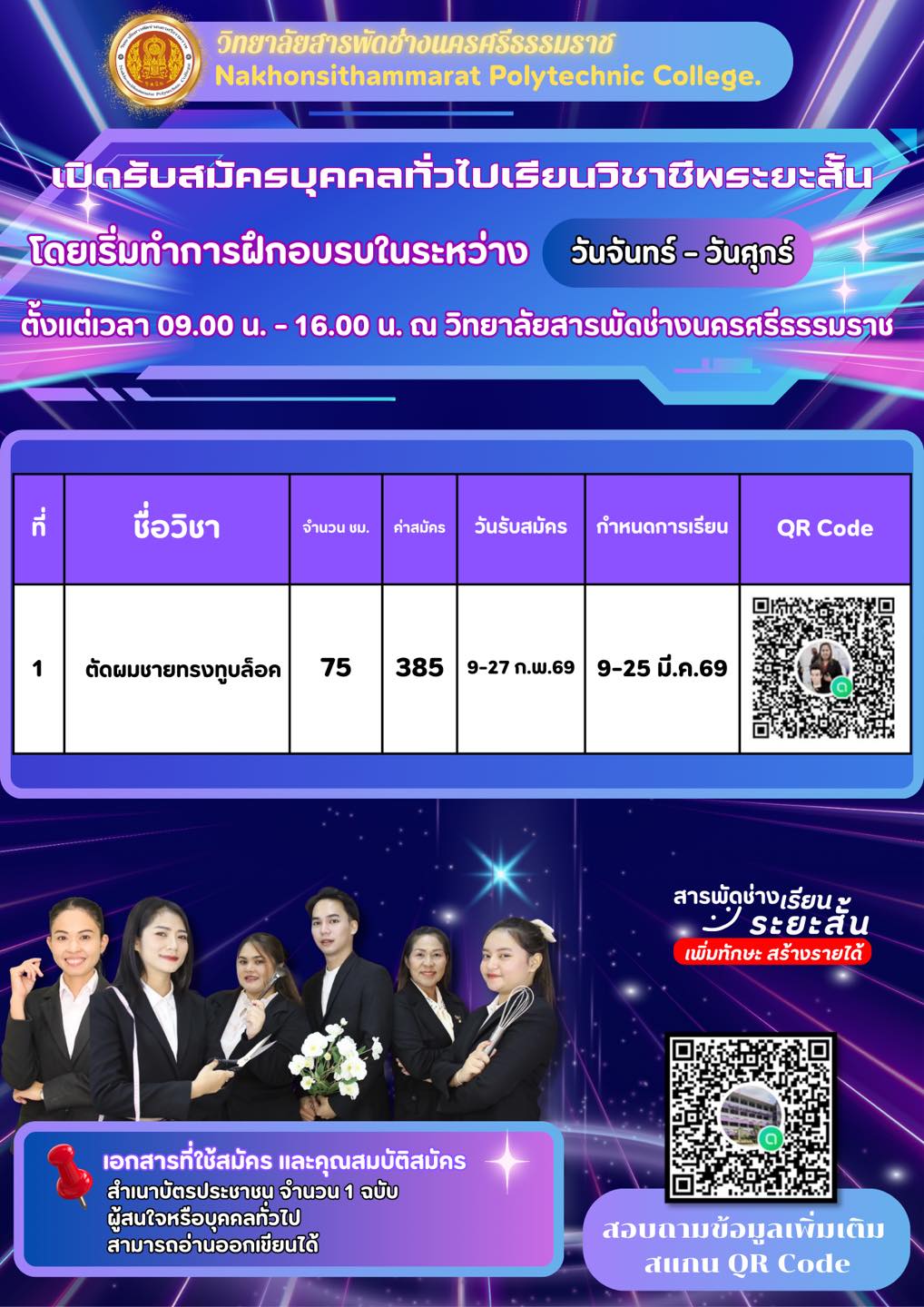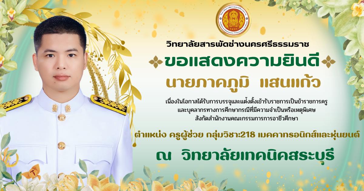การสอนหลักสูตรระยะสั้น Up skills , Re skills 36 ชั่วโมง ”หลักสูตรจัดดอกไม้เชิงธุรกิจแบบสากล“ ให้กับประชาชนทั่วไป ณ วิทยาลัยสารพัดช่างนครศรีธรรมราช